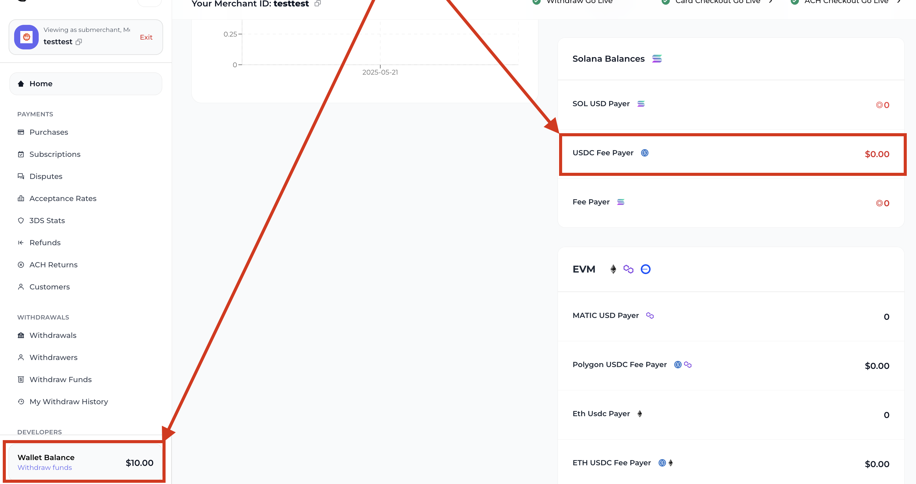 Where to find the USDC Fee Payer wallet.